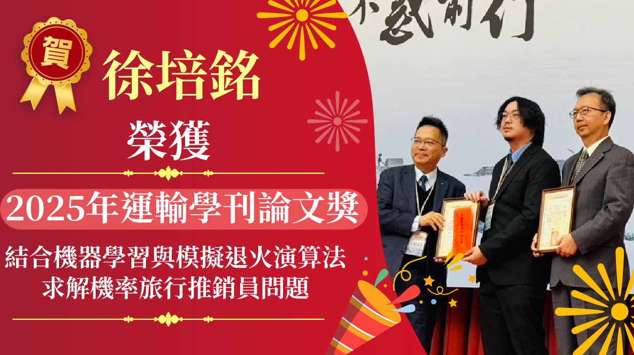 - 🎉賀🎉徐培銘 榮獲2025年運輸學刊論文獎🏆 2025.12